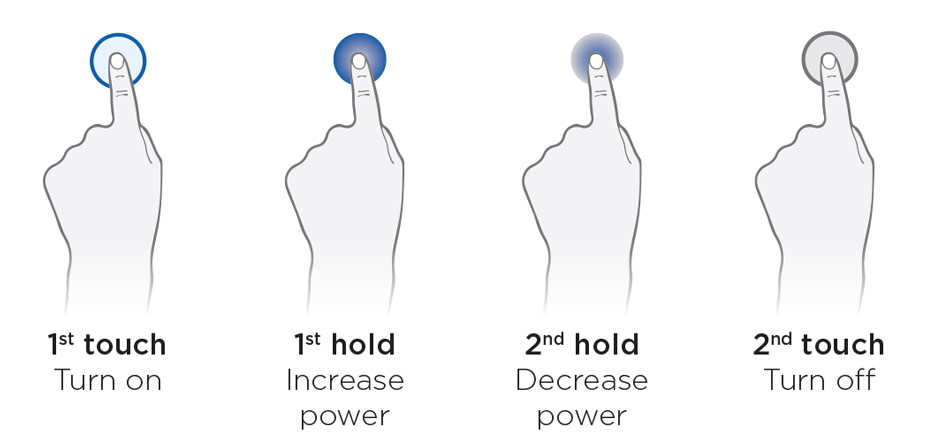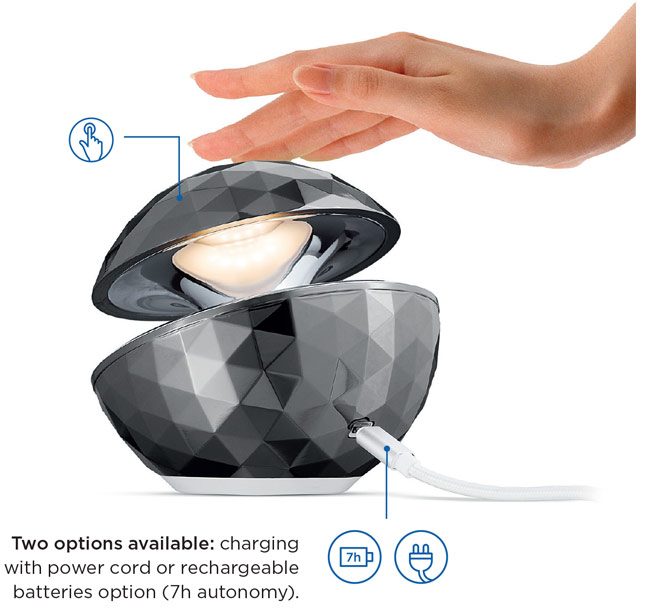 Its light can be dimmed, intensified, switched on or off with fun hand gestures or taps.