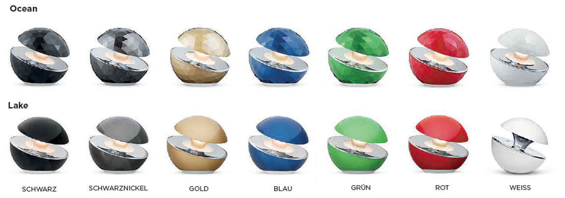 Das innovative Design der reflektierenden LED-Leuchten Ocean und Lake verkörpert unsere Design-Philosophie – reflektierendes Licht. Die Leuchten sind ein echter Blickfang. Ob zu Hause im Wohnzimmer oder neben dem Bett oder im professionellen Bereich in Büro oder Hotel – die Leuchten setzen Wohlfühl-Akzente. Die Steuerung erfolgt durch Berührung, betrieben werden die Leuchten mit Netzspannung oder Akkus.
